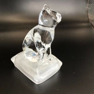Lead Crystal glass Cat figurine paperweight 5"x4" wt 1lb 4oz vintage
