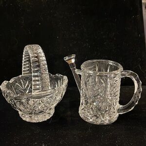 Lead Crystal Flower Basket and Watering Can-Beautiful Design
