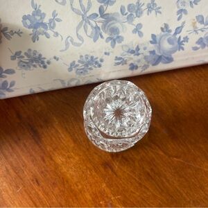 Lead Crystal Mini Bud Vase Toothpick Holder Sawtooth Rim Starburst Bottom 3” VTG