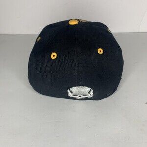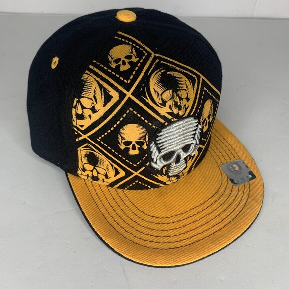 Leader In Headwear Yellow Black Skull Fitted Cap Holographic Sticker Size XXS
