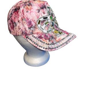 Baseball cap distressed embellished hat crystal bow beaded sparkle pattern
