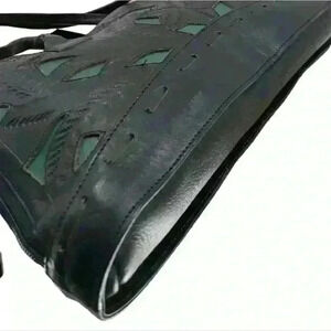 Leaders In Leather Black Hand Tooled Vtg Lined Shoulder Bag Made in Paraguay.