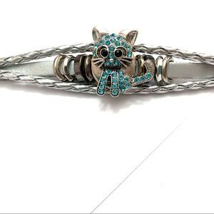 Cute bracelet on brown cords. This has an adjustable chain on the back. New in package.
