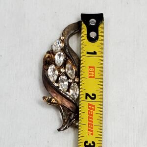 Leaf Brooch Vtg Gold Tone Leaf Rhinestone 2.5" Unsigned