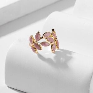 Leaf Design Cuff Ring Gold Pink Adjustable Boho Festival Leaves Botany Plant