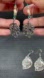 The earring set comes with three pairs of earrings which include a pair of leaf earrings in an antique silver setting that is accented with wood and seed beads. The second pair of earrings are antique silver leaves with a turquoise bead center surrounded by tiny orange beads and the third pair of earrings are antique silver circles with a rose design.