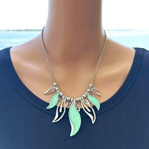 This stunning Leaf Necklace in a silver tone features hues of green and blue that catch the light beautifully. It's adjustable length ensures a perfect fit for everyone.