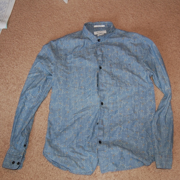 Blue button up with leaf patterns