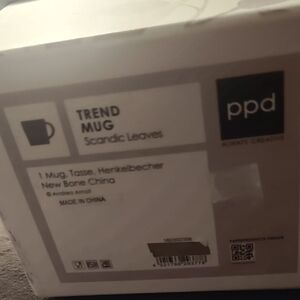Elegant ceramic mug with a leaf pattern. Perfect for coffee or tea. Comes in a matching decorative cardboard gift box. Good gift idea for anyone.