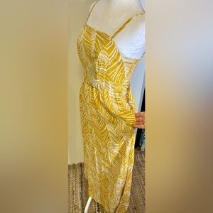 Soft rayon blend fabric. Features a mustard yellow and white leaf pattern. Sundress Boho Minimalist