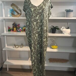 Stylish jumpsuit with a leaf print design. Perfect for a chic and comfortable look.