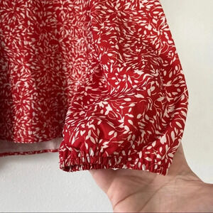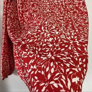 • features: This eye-catching lightweight blouse in Size XL features a vibrant red and white leaf botanical print. It has a flattering split V-neck and subtle pleated ruffle detail on the shoulders, adding a touch of coquette charm. This top is an effortlessly chic piece perfect for a romantic, boho, or whimsical aesthetic.