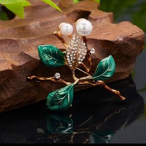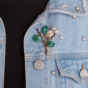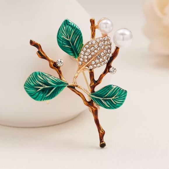 Leaf Rhinestone Brooch Pin