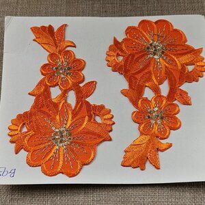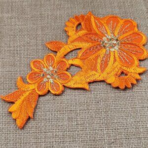 Leaf Shape Patches Embroidery Iron On Orange Patches Set of 2