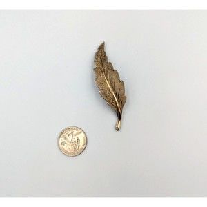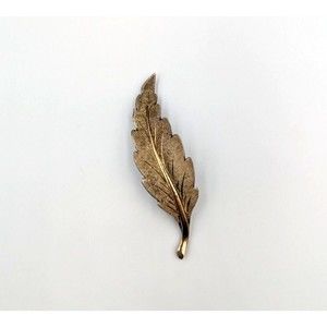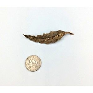 Leaf Sterling Silver Brooch Made In Italy Textured Gold Wash Vintage 925 Pin Marked Made In Italy 925 1" x 3.25" 8.9 grams total weight Good vintage condition