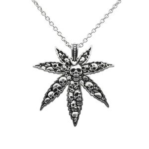 Embrace the high life with the Leaf and Skull necklace. Made entirely of 316L stainless steel, the pendant on the Leaf and Skull necklace is shaped like the Indica leaf and has a slew of fiendishly giddy skulls engraved inside. Whether it’s for a daytime buzz or an evening chill, the Leaf and Skull necklace is a badass addition to your party-time look.