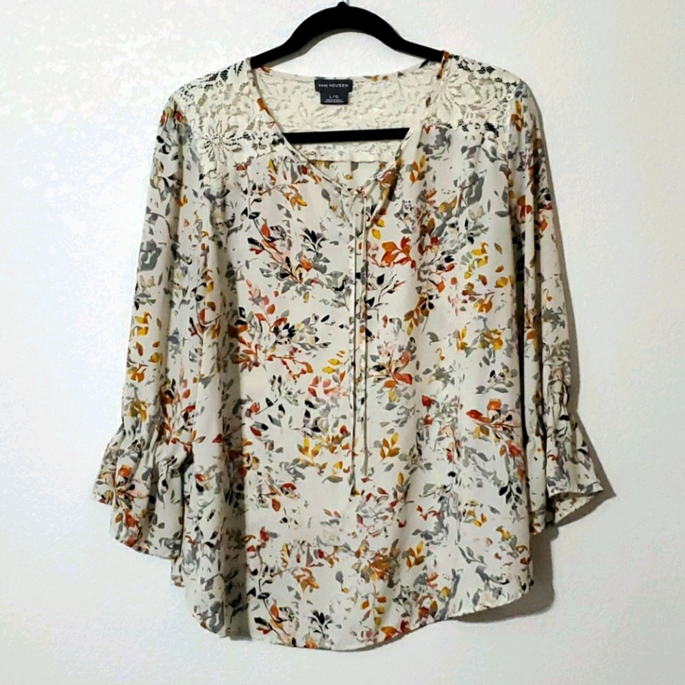 Love the pattern, the lace, and the flow of this top. It is in great shape.