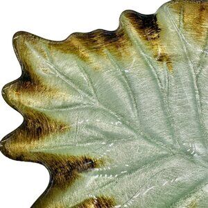 Leaf-Shaped Metal Trinket or Candy Dish Green and Gold 10 x 8 inches