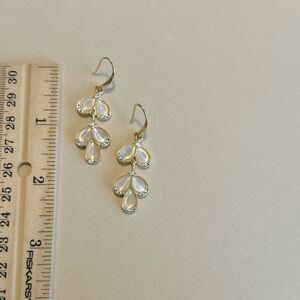 Crystal decor leaf drop dangle earrings in gold tone hardware