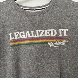 Embrace comfort and style with the League Gray Crewneck Sweater. This classic pullover features a retro-inspired design with a bold 'Legalized It' graphic across the chest. Made from a soft cotton blend, it offers a cozy fit with ribbed cuffs and neckline, perfect for any casual occasion.