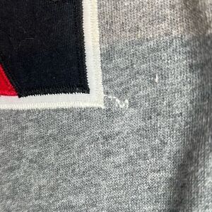 Show off your Husky pride in this classic Northeastern University sweatshirt by League Collegiate Outfitters, featuring a bold red and black split “N” applique front and center. Made from a cozy 80% cotton and 20% polyester blend, the soft heather gray fabric offers comfort and casual style. Features raglan sleeves, ribbed cuffs, hem, and neckline, plus a brushed interior for warmth and an easy fit. Pullover style with no hood, ideal for layering year-round. Size Small. Fitted. Subtle red chili pepper embroidery on the sleeve adds a signature League touch. Condition: gently worn with a minor flaw in the fabric beneath the logo (pictured), overall well maintained. Perfect for students, alumni, or fans — pairs effortlessly with jeans or joggers.