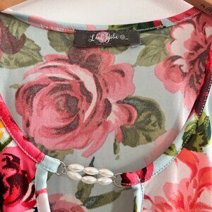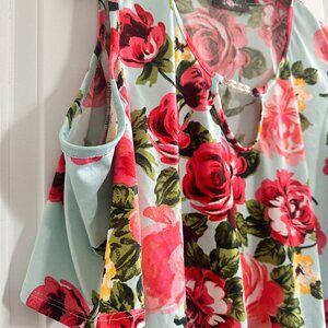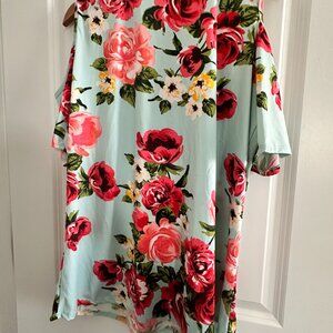 Leah Jolie 3X Floral Tie Front Cold Shoulder Hi-Low Top
