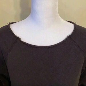 Leallo Woman’s Sweatshirt, Size XS. Black 100% Cotton. Distressed collar area, nice heavy weight fabric. Looks like it is a Crop style with 3/4 sleeves but please see measurements in photos. Good pre owned condition.