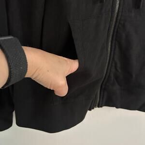 Features: Drawstring hood, full zip, pockets, weathered black, lightweight, cotton
