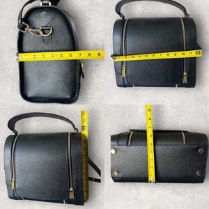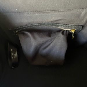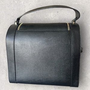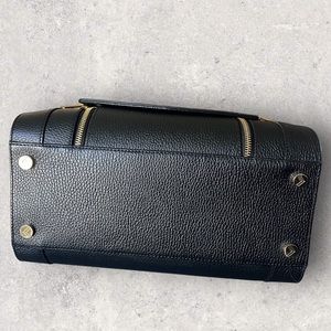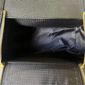 Leanelle Barcelona Bag in Black Leather. Upper compartment for your essentials and lower isolated compartment with separate access and thermal lining perfect for your lunch containers. Bag is in very good condition with minor scratches (refer to pic with red circles).