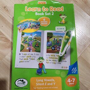 Leap Frog Learn to Read Book Set 2 (Long Vowels, Silent E Y) Tag Reading System. Set of 6 books, 5 like new and one with a purple stain on 3 of the pages as shown in the photo but otherwise hardly used.