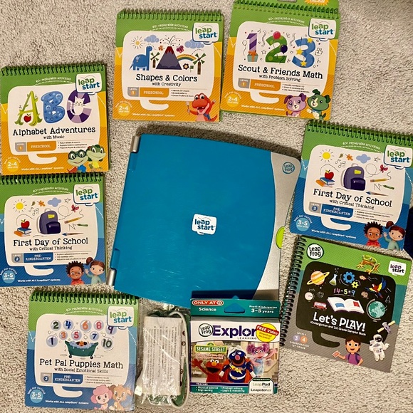 EUC Leap Start Bundle. Includes tablet with stylus, 6 books, and charger.
