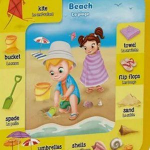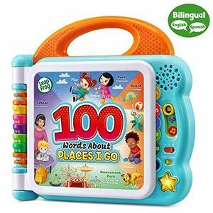 Explore words about places kids love with the 100 Words About Places I Go bilingual learning book! Featuring age-appropriate words, this interactive book teaches about people and objects in 12 unique places in both English & Spanish. Go to the beach in any season and discover words in two languages about things to bring and surprises to find. The school, the park, the farm, the amusement park and more locations can light up your child’s world and spur their imagination. Ten touch-sensitive locations on each page teach about words, colors and counting in the context of 12 unique places. Inspire toddlers and preschoolers who are ready to go places!
