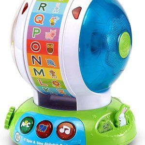 Learn about animals and letters with every spin! the alphabet zoo ball is an interactive spinning toy that features three modes of play. Your little one will have a ball as they press the three light-up buttons to learn letter names, animal names and sounds, and music. Every spin turns the inner wheel, triggering spinning balls on one side and projecting LED colors through a pattern of different shapes on the other. When the wheel stops, your child will hear either letter names or animal names and sounds. In music mode, they can sing along to the ABC song or a song about colors and shapes. Slide the Bee or press the frog and rabbit buttons to develop fine motor skills.