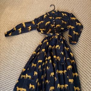Leapord Print dress with sash .Versatile can carry you from day to night.has a minor repair in one of the sleeves barely noticeable please refer to pictures for detail