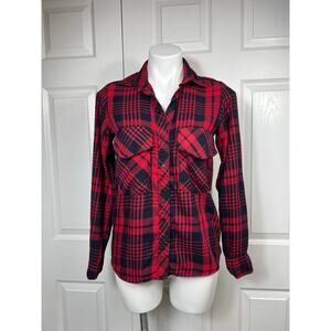 Leara Woman Premium Denimwear Collection Plaid Black/Red Classic Cotton Small