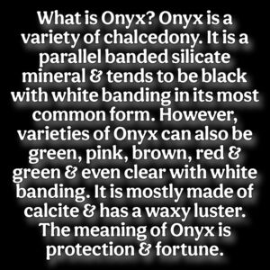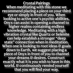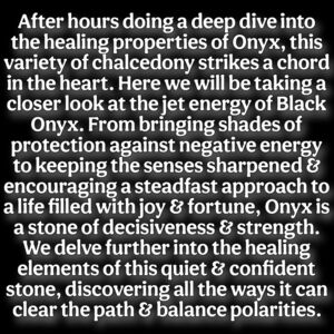 Like all crystals, Black Onyx should be kept cleansed & charged on a regular basis. As Black Onyx is a protective stone that is forever busy mopping up bad vibes & negative energies, it helps to keep it cleansed whenever you get the feeling it is carrying dead weight. This will help to make sure your stone doesn’t stutter when you need it. One of the simplest ways to quickly & safely cleanse Black Onyx is to smudge it with a sage stick. Light your sage & pass the stone through the smoke for several seconds. You can also cleanse & charge your Black Onyx by leaving it in sunlight for 6-12 hours to top it right up. If you don’t want to leave your stone in the sun, it can also be left in the moonlight or even out in the rain for a day.