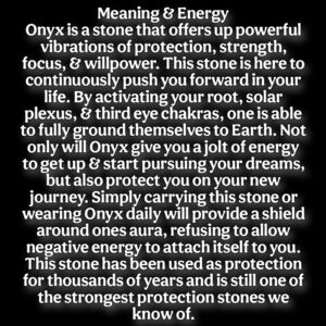 Black Onyx gives strength, stamina, & helps you to adjust to your surroundings without feeling overwhelmed. This gem does the perfect job of a talisman or an amulet by stopping potential threats in their tracks & clearing the path for you to move unobstructed through this world. By ensuring your roots run deep, your emotional balance is equalized, & that your vigor is forever fresh & renewed, you can be sure that Black Onyx is forever on your side.