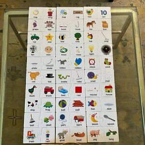 Grades K - 3. Matching provides an effective way to develop and improve student's reading and language skills. The heavy cardboard stock make these a long lasting classroom favorite. Includes 30 puzzles measuring 4.5" x 3.75".