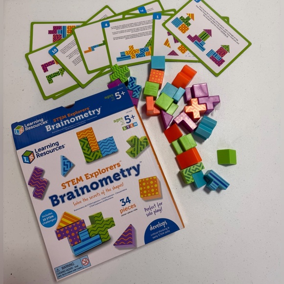 Unlock creativity with the Learning Resources Brainometry Puzzle Set. Featuring vibrant pieces in purple, orange, green, and blue, this set is perfect for imaginative play and learning.
