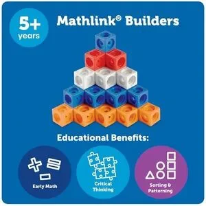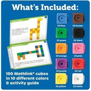 Enhance your child's math skills with the Learning Resources MathLink Cubes Early Math Activity Set. This colorful set includes cubes in black, white, red, pink, orange, yellow, green, blue, and purple. Perfect for hands-on learning and developing essential math skills. Out of box.