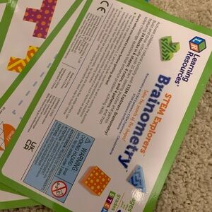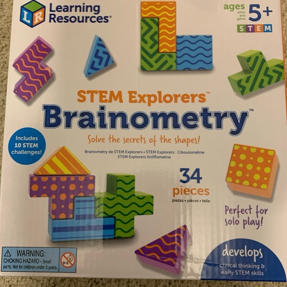 Discover the secrets of shapes with the Learning Resources STEM Explorers Brainometry. This colorful set includes 34 pieces in vibrant blue, green, and purple. Perfect for solo play, it develops critical thinking and early STEM skills. Out of box.
