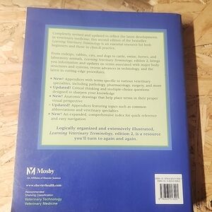 Second edition of Learning Veterinary Terminology by Douglas F. McBride. Features a blue cover with colorful animal illustrations.