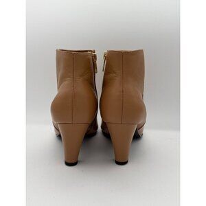 Leather Ankle Boots With Mid Heel & Gold Zip Closure Size 7