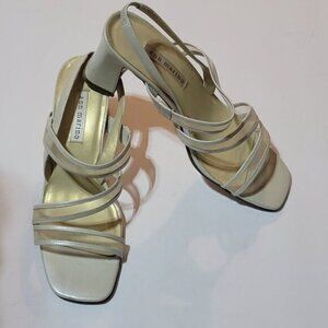 Leather Ann Marino Chunky Heels in Champagne color Size 8