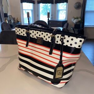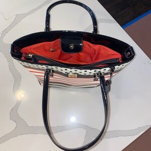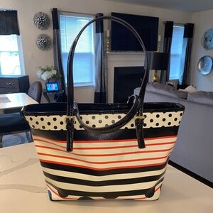 Leather Anne Klein Black White & Red Tote with Patient Leather Trim