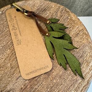 Leather Autumn Fall Purse Charm Oak Leaf Bag Charm Genuine Leather Keychain