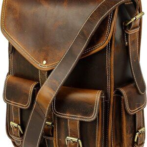 Leather Backpack Rucksack Travel Laptop Camping Bag for Men Women