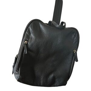 Leather Backpack/messenger in charcoal with red interior