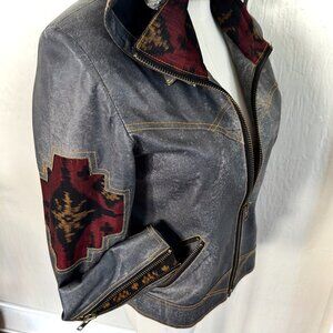 Leather & Bali Silk Ikat Motorcycle Jacket by KIYOTE of BIG SUR (One of a Kind)