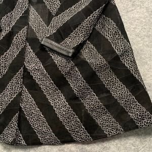 Leather Band Collar Womens 1X Silver Embroidery Mid Length Coat